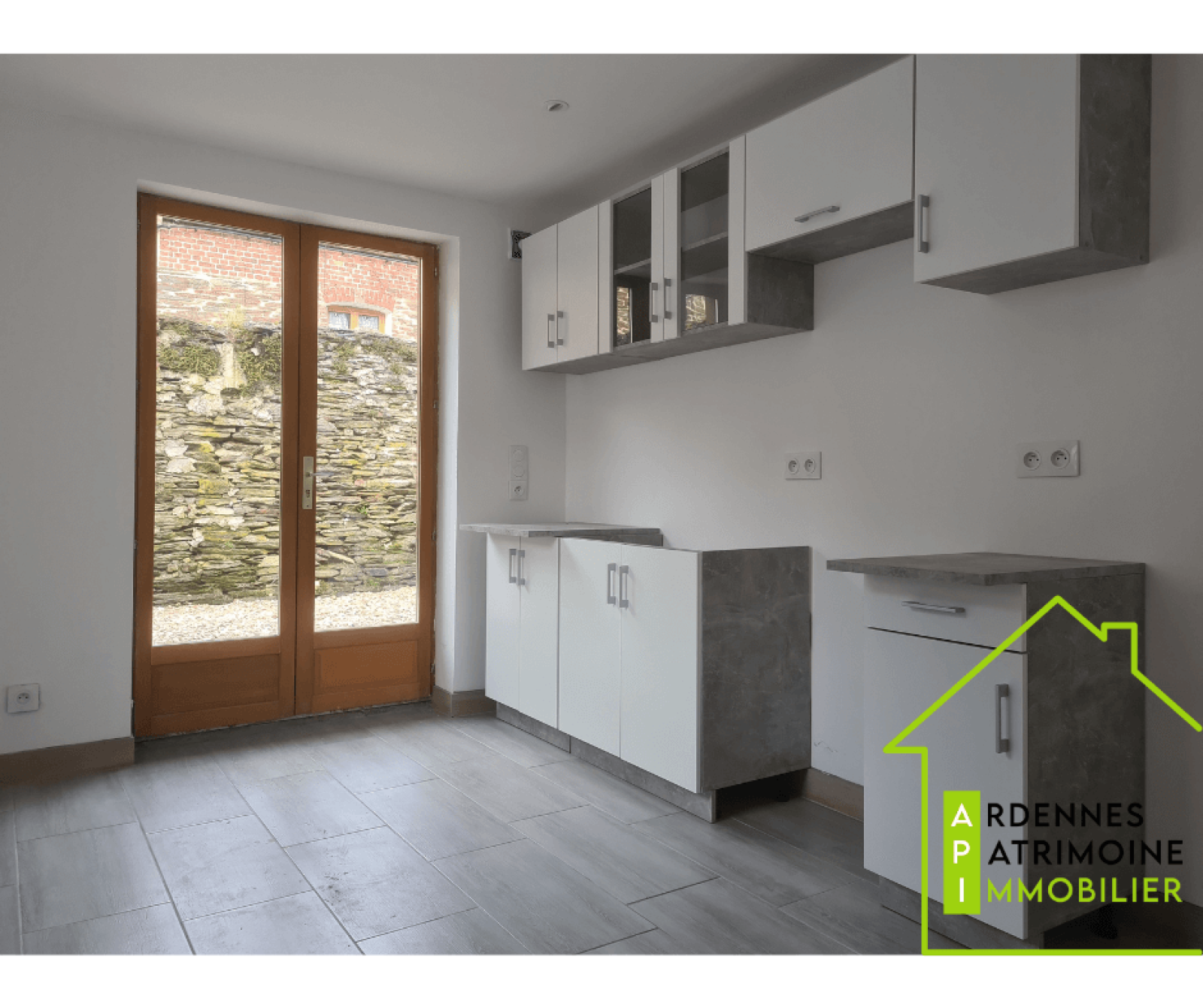 L'entrée principale s'ouvre sur un salon-séjour de 25 m², d'une salle d'eau avec toilettes, ainsi que d'une cuisine aménagée donnant accès à une cour de 17 m².